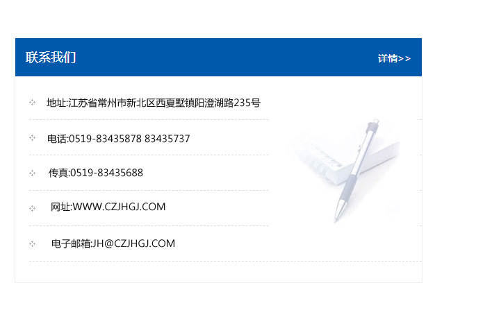 地址:常州市新北區友邦商務大廈1幢16、17層  電話:0519-85101652  傳真:0519-85112595  郵編:213022  網址:www.cz-jiayue_cn.hf-bs.com  郵箱:xiajifengaa@163.com